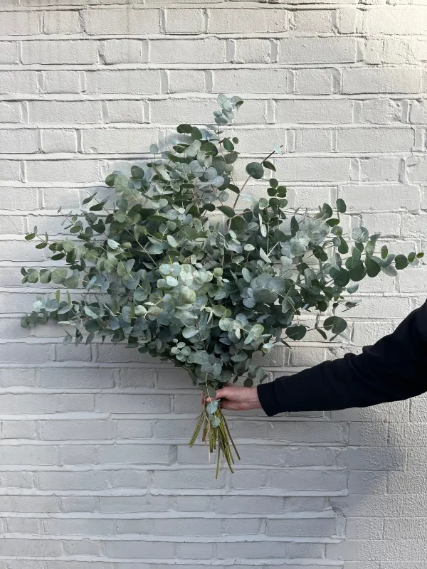 Scented Eucalyptus Bunch Fresh scented eucalyptus foliage in two sizes. It's one of the more practical things a florist sells because it behaves differently from cut flowers — it dries in place rather than wilting, holds its shape as it dries, and the scent carries through weeks and sometimes months depending on where it's kept. Available as a Deluxe (smaller) or Luxury (larger, more abundant) bunch. If you want a regular supply, a subscription can be arranged — email the shop to set it up. The scent Clean and herbal — cool and camphor-like rather than sweet or floral. At room temperature it's a background presence, noticeable up close and when you move through the room. In warmth and steam it gets stronger. That's the basis of the shower display method: warm steam activates the oils in the leaves and carries the scent through the room. It works, and it works best in a properly steamy shower rather than a slow drizzle. Fresh eucalyptus is sharper. Dried is softer and more settled — the same family of scent but quieter and more lasting. Both have their uses. How to display it Shower: tie the bunch to the shower head or a towel rail with the leaves hanging down, away from the direct spray. The steam does the work. A bunch hung here usually lasts two to four weeks before drying fully, after which the scent fades but the foliage keeps its shape and colour. Vase: place stems in water for the first week or two while fresh, then remove from water and let it dry in the vase. Eucalyptus is one of the few foliage types that dries well without going brown — the leaves hold their shape and shift to a softer, slightly more muted silver-green. It looks good dry in a way that most foliage doesn't. Other options: laid horizontally on a shelf, woven into a wreath frame, tucked alongside dried flowers in a seasonal arrangement. It has enough structural integrity dried to work as a base for other things. Sizes Deluxe suits a bathroom display, a single vase, or a subtle accent in a larger room. Luxury is better for a dramatic vase arrangement, a large shower area, or anywhere you want the foliage to fill a space rather than accent it. If in doubt about which to order, consider the surface or space it's going into. As a gift Eucalyptus travels well because it isn't fragile and doesn't have a short clock on it the way flowers do. It's a good choice for people who like natural things in their home but don't maintain fresh arrangements — it needs almost nothing from the recipient. It pairs naturally with a candle, soap, or bath product if you want something more substantial. Seasonal variation Leaf size and colour depth vary slightly between batches depending on the season and source. The differences are minor. The overall look and fragrance are consistent — the product photos are a close reference but the exact shade may differ a little. Care Shower display: hang away from direct water, replace every two to three weeks as the leaves dry out and the scent fades. Vase display: trim stems at an angle, place in water for the first week or two, then let it dry in the vase without water. No further maintenance once dry. FAQ What does eucalyptus smell like? Clean and herbal — cool, slightly camphor-like, not sweet or floral. Stronger in warmth and steam, quieter at room temperature. The scent changes slightly as it dries, becoming softer and more settled. How does the shower display work? Tie the bunch to your shower head or towel rail with the leaves hanging down, positioned away from the direct spray. Warm shower steam releases the oils in the leaves and carries the scent through the room. It's more effective with a properly hot shower than a cool one. What sizes are available? Deluxe and Luxury. Deluxe suits smaller spaces and subtle accents. Luxury is better for larger displays or anywhere you want the foliage to have real presence. Can I get regular deliveries? Yes. A subscription is available — email the shop to set up regular deliveries. How long does it last? In a shower, two to four weeks before the leaves dry and the scent fades. In a vase with water, similar — after which it can be left to dry in the vase and will hold its shape and colour for months. Does it need to go in water? For the first week or two it benefits from water while the stems are fresh. After that, it can be left to dry without water and will hold up well. Is it suitable as a gift? Yes. It's durable enough to travel well and lasts long enough after arrival to feel like a considered gift rather than a timed one. Works well on its own or paired with home fragrance products. Will it match the photos exactly? The photos are a close reference. Leaf size and colour depth vary slightly between batches depending on the season. The overall look is consistent.