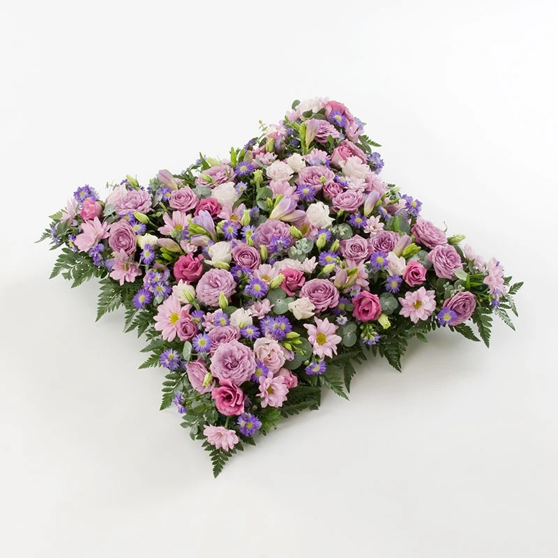 Funeral Cushion Flowers for Loved Ones – Cushion Loose Tribute The cushion is one of the oldest shapes in British funeral floristry. The rounded form has been part of services for generations, and it's easy to see why it stays — it's a quiet presence. It doesn't pull focus or make a performance of itself. It just sits there and says something was cared about. Our cushion loose tribute uses that shape but fills it differently from a traditional tightly packed cushion. The flowers are arranged with space between them, more openly, so individual stems show and the arrangement has movement and texture. It reads closer to garden cutting than formal set-piece. For some families, that informality is exactly what they wanted; for others, it's worth knowing about as an alternative before deciding. What the tribute looks like The base is floral foam, shaped into a cushion form, with fresh seasonal blooms worked across it. The finished piece typically measures 15 to 18 inches across, though exact sizing shifts a little depending on which flowers we're working with. All our tributes are made by hand at On The Hill Flowers. We buy seasonal stock, so the specific flowers used will depend on what's arriving fresh at the time of your order. Roses, chrysanthemums, carnations, lilies, and gerberas are all regulars. Other blooms can often be included — let us know what you have in mind and we'll say whether it works well with a loose arrangement or not. Colour Most people come to us with a favourite colour, a rough feeling they want, or no particular idea yet. Any of those is a fine starting point. Whites and creams are chosen often for formal or traditional services — they're understated and they sit well in most settings. Softer pinks, lilacs, and mauves give the piece a gentler quality. Deeper tones — dark reds, rich purples, warm oranges — bring more weight and presence to the arrangement. A cottage garden mix, using varied textures and heights, is something we're well-placed to do; it tends to suit people who'd have found a formal arrangement too stiff. Favourite colours or flowers are always worth mentioning. We may not be able to hit a precise match depending on the season, but we'd rather know than not. Ordering and delivery Please allow at least two working days for preparation. We deliver directly to funeral homes, churches and chapels, crematoriums, and graveside locations. If you're in the middle of arranging a service and need to talk through what you'd like rather than just place an order, ring or message us. That sort of conversation is part of what we're here for. FAQ What does a loose cushion arrangement look like, compared to other funeral tributes? A loose cushion sits in the same rounded shape as a traditional cushion, but the flowers inside it aren't packed tightly against each other. There's space between stems, which gives the arrangement a more natural, open feel — more like flowers picked from a garden than a formal floral display. Some families prefer it precisely because it looks less rigid. Others prefer the more structured look of a tightly packed tribute. Both are valid. If you're not sure, you're welcome to ask us to describe what each looks like. What flowers will be included? We work with seasonal blooms, so the specific varieties will depend on what's arriving fresh at the time we make your arrangement. Roses, chrysanthemums, carnations, lilies, and gerberas are common through most of the year. If you have a particular flower in mind — something the person you're remembering grew or loved — mention it when you order. We'll include it where we can. Can I choose the colours? Yes. Most people either come to us with a specific colour or palette in mind, or they leave it to us. Both are fine. Whites and creams are a popular choice for traditional services. Softer pastels — pinks, lilacs, mauves — are often chosen when people want something gentle rather than dramatic. Richer tones like deep red, purple, or warm orange give the arrangement more presence. If you're not sure what you want, we can talk it through. How big is the arrangement? The cushion loose tribute runs around 15 to 18 inches across. Final sizing can sit slightly outside that range depending on the flowers, but we'll always aim to produce something proportionate and balanced. If you need a specific size for a particular setting, mention it when ordering. How much notice do you need? At least two working days. If you're working to a tight timeline, contact us as early as possible and we'll let you know what's achievable. Where do you deliver funeral tributes? We deliver directly to funeral homes, churches, chapels, crematoriums, and graveside. We'll arrange delivery timing to ensure the tribute arrives fresh and in good condition before the service. Can the cushion loose tribute be used for any kind of service? It's a flexible shape that works at a range of services — traditional funerals, cremations, graveside ceremonies, and informal celebrations of life. It's suitable as a tribute from family, as a contribution from a group, or as a standalone piece. If you're trying to work out whether it's the right choice for a specific service, we're happy to advise.